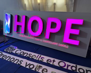 Spécialisés dans la fabrication d’enseignes lumineuses et l’impression grand format depuis 2019, nous accompagnons les entreprises dans la valorisation de leur image.